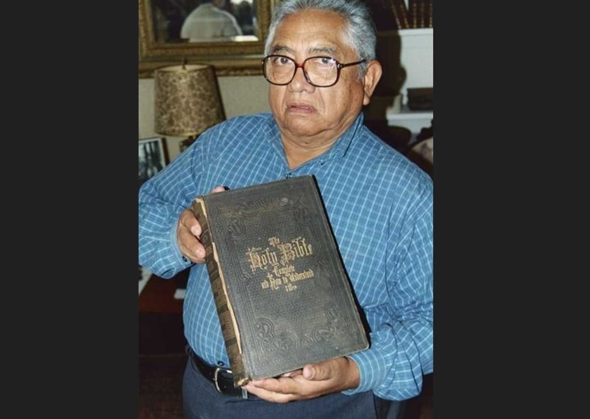 Pastor Ricardo visits Palmyra holding Bible from Palmyra Historic Museum