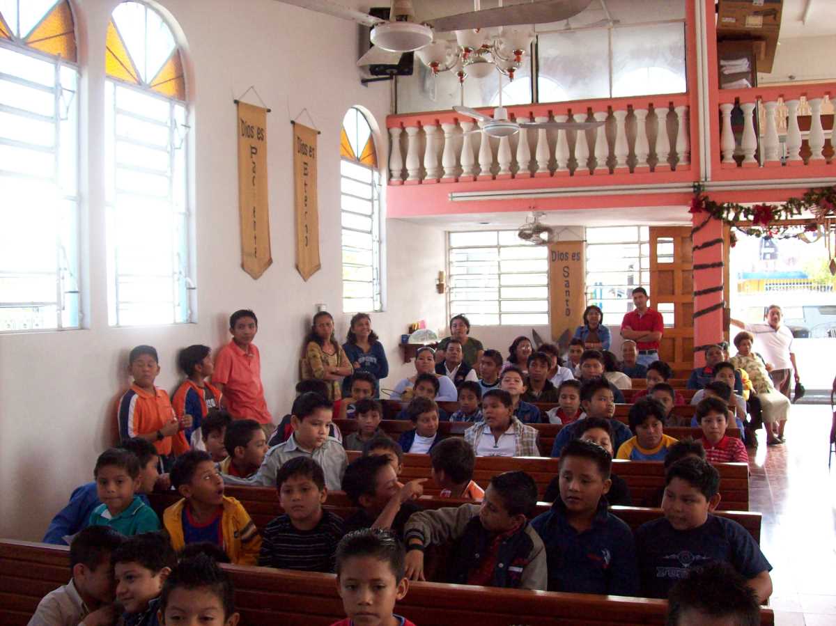 Typical gathering for events and worship at El Divino Maestro